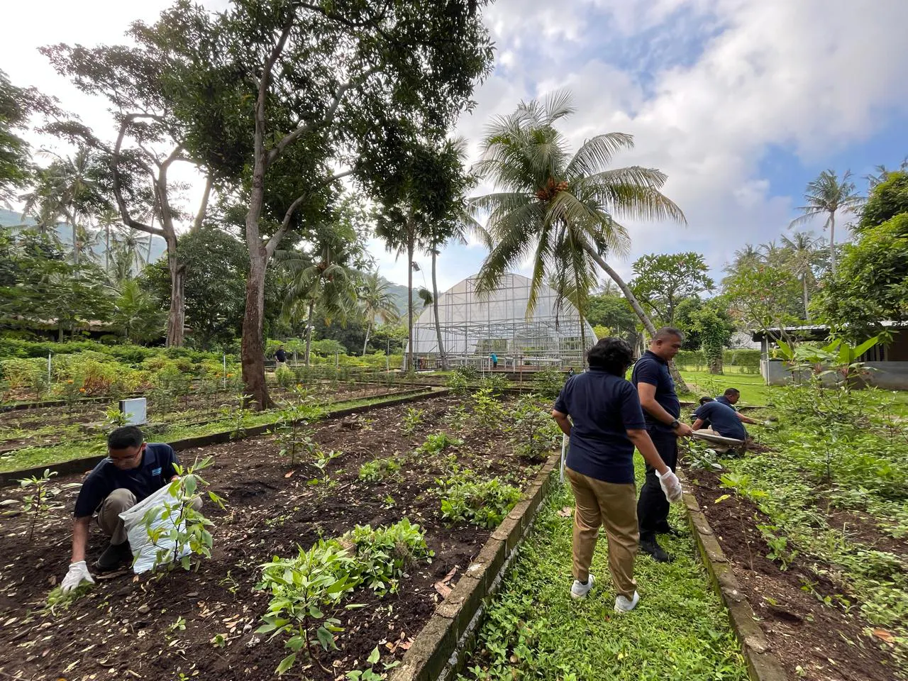 This month, our eco farm successfully harvested a variety of fresh produce grown naturally within the resort grounds. The harvest included 56.85 kg of pokcoy, 10.48 kg of gumitir (marigold), 5.99 kg of bananas, 12.58 kg of papayas, 1.76 kg of Brazilian spinach, 1.41 kg of pancar, and 2.35 kg of eggplant, along with 580 young coconuts.